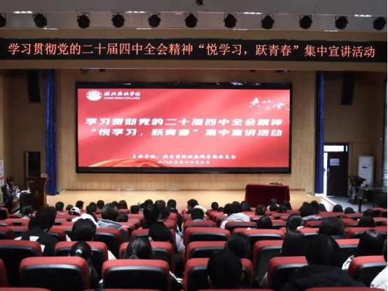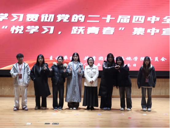 为深入贯彻党的二十届四中全会精神,积极响应团中央十九届四中全会,关于组织动员广大青年在新时代新征程上建功立业的号召,切实强化青年思想引领,筑牢信仰之基,并着力营造崇尚学习、奋发有为的校园文化风尚,我校于12月3日,在学术报告厅隆重举行“悦学习,跃青春”主题宣讲活动。