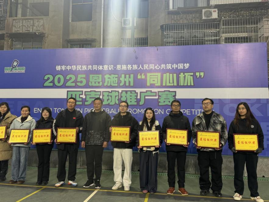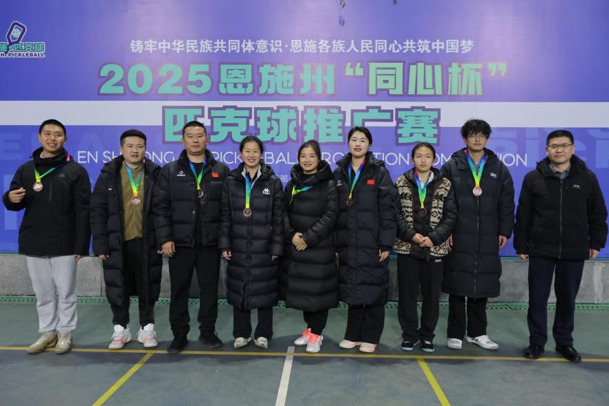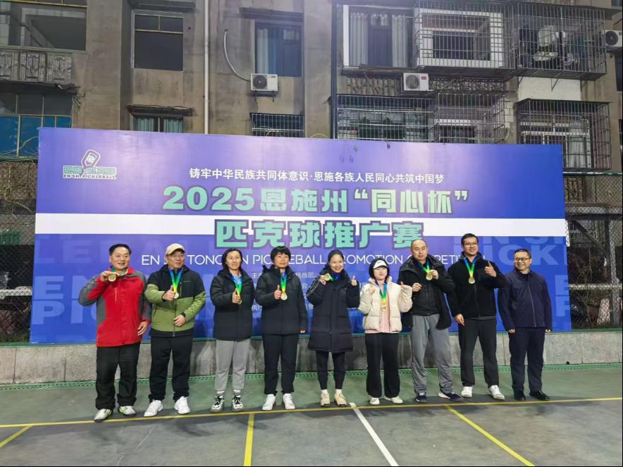 12月26日至28日,我校派出16名师生组队参加恩施州首届“同心杯”匹克球推广赛,凭借团结协作、奋勇拼搏,斩获男子单打冠军、混合双打季军,并荣获优秀组织奖,实现竞赛成绩与精神文明双丰收。