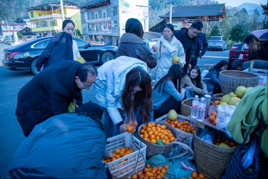 活动尾声,校村党员共同参与趣味运动会,“7分钟接力蒙眼抱柚子”项目精彩纷呈。双方队员默契配合、奋勇争先,学院党员团队凭借高效协作赢得比赛,现场氛围热烈融洽,既增进了校村情谊,更展现了两个党组织团结奋进的良好风貌。为践行助农初心、助力乡村振兴,老师们纷纷购买当地农户的特色水果作为纪念,以实际行动拓宽农产品销路、助力农民增收,用自觉践行乡村振兴使命。