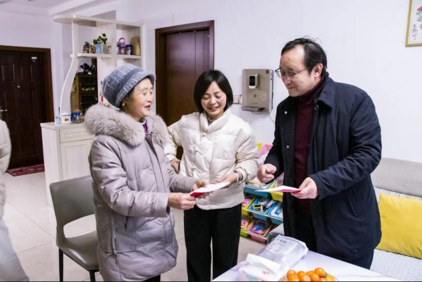 “感谢您培养了这么优秀的孩子,他为学校做出了贡献,上学年被评为学校年度优秀贡献者。”校领导双手将精心制作的感谢卡递到一位教职工父母手中,并表达了学校对教职工父母的感谢:“这是一份小小的心意,更是我们对您默默支持的感恩。”